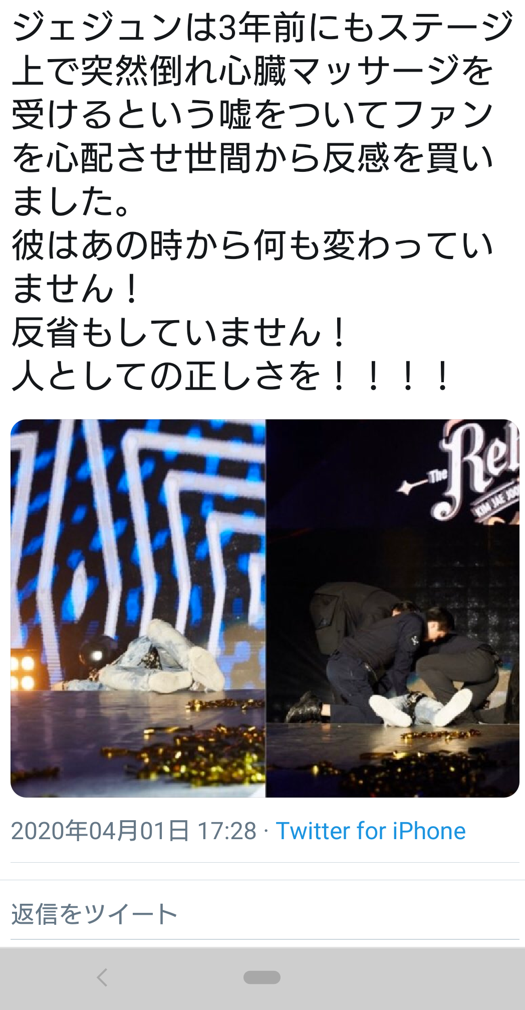 JYJジェジュンの度を越したエイプリルフール、今回が初めてではなかった(朝鮮日報日本語版) - Yahoo!ニュースheadlines.yahoo.co.jp【STARNEWS】歌手で俳優のキム・ジェジュンが、新型コロナウイルス感染症(コロナ19)確定判定を受けたと明かしたものの、エイプリルフールについたウソだと訂正した。胸をなでおろす状況だが、度を越し