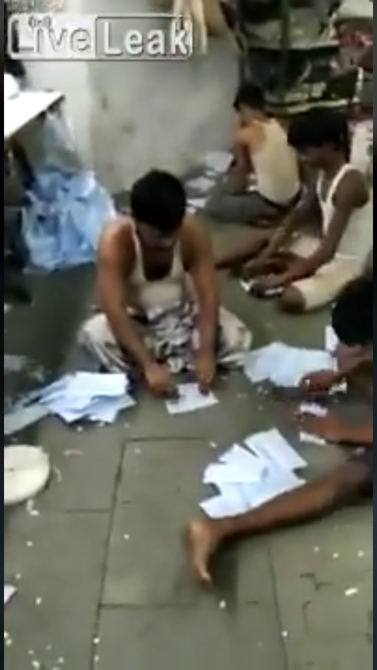 インドかバングラぽいおじさんたちがミシンで縫ってたやつだよね