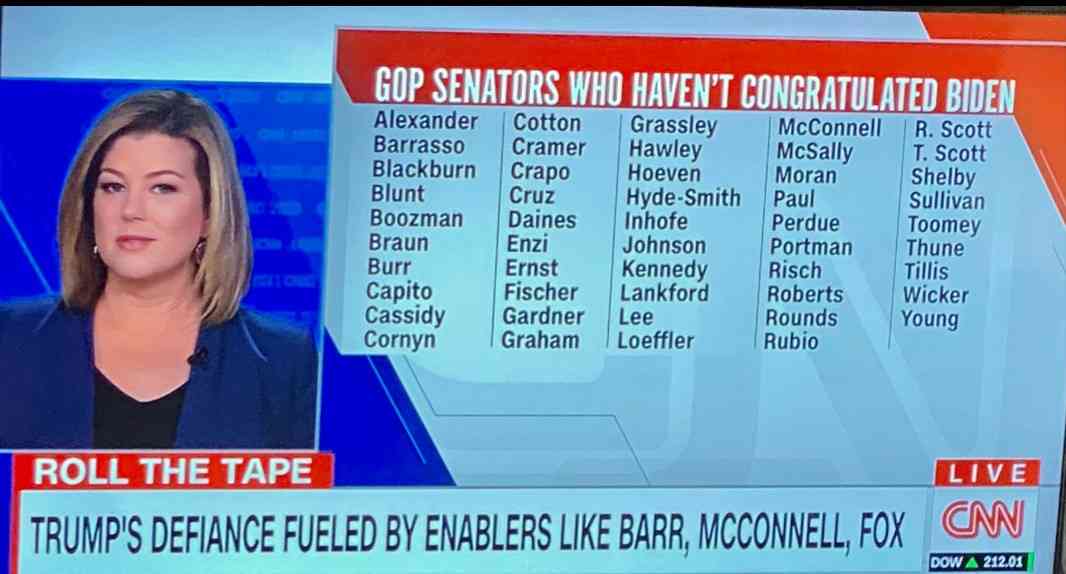 バイデンに祝辞を述べていない共和党議員のリストを作成し放送