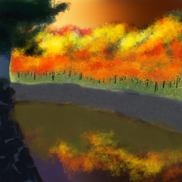 紅葉の皇居書いて、むずかしいかな?+2