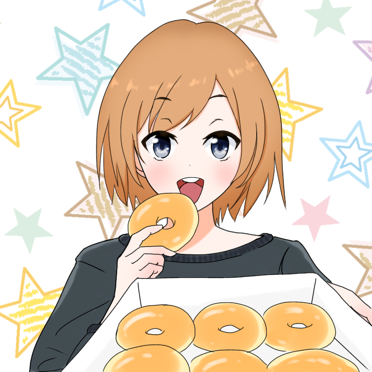 もう1人、みゃーもり(おいちゃん)描きました。手に持つのはクリスピークリームドーナツだと思って下さい🍩![]()