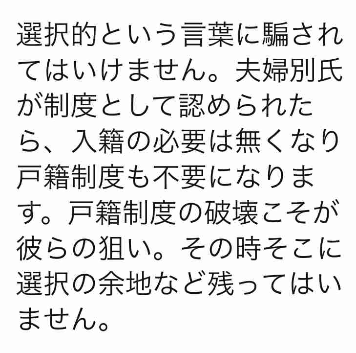 騙されて選択的夫婦別姓にしたら必ず戸籍は廃止の方向へ持って行かれます