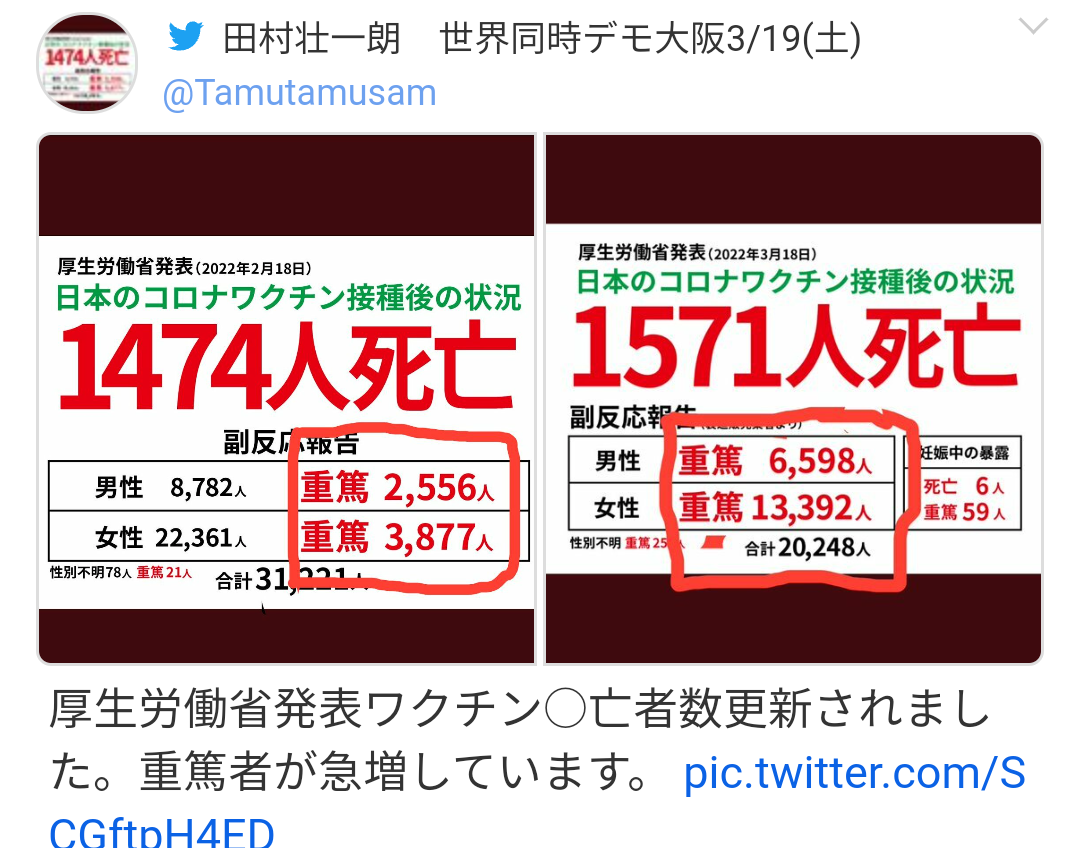 報告に上がっているだけでこれ。三回目で重篤者がかなり増えてるみたい。![]()