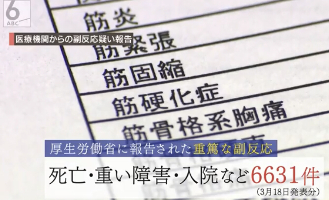 重篤な副反応込みだと、3月18日時点で6631件だって。この中にニュースになってた10代の女の子も含まれるんだろうな。![]()