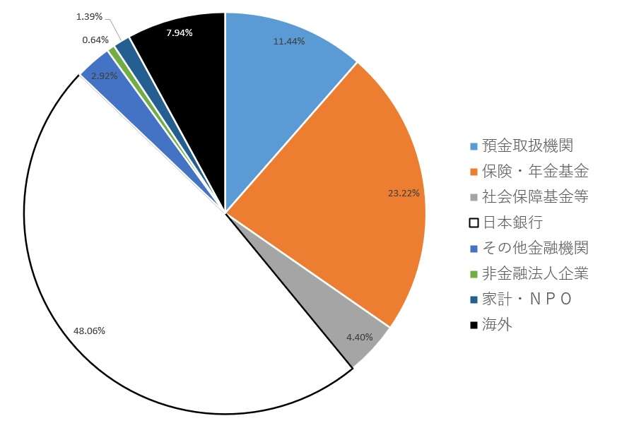 2021年末時点で、日本国債の48%は日本銀行が保有。