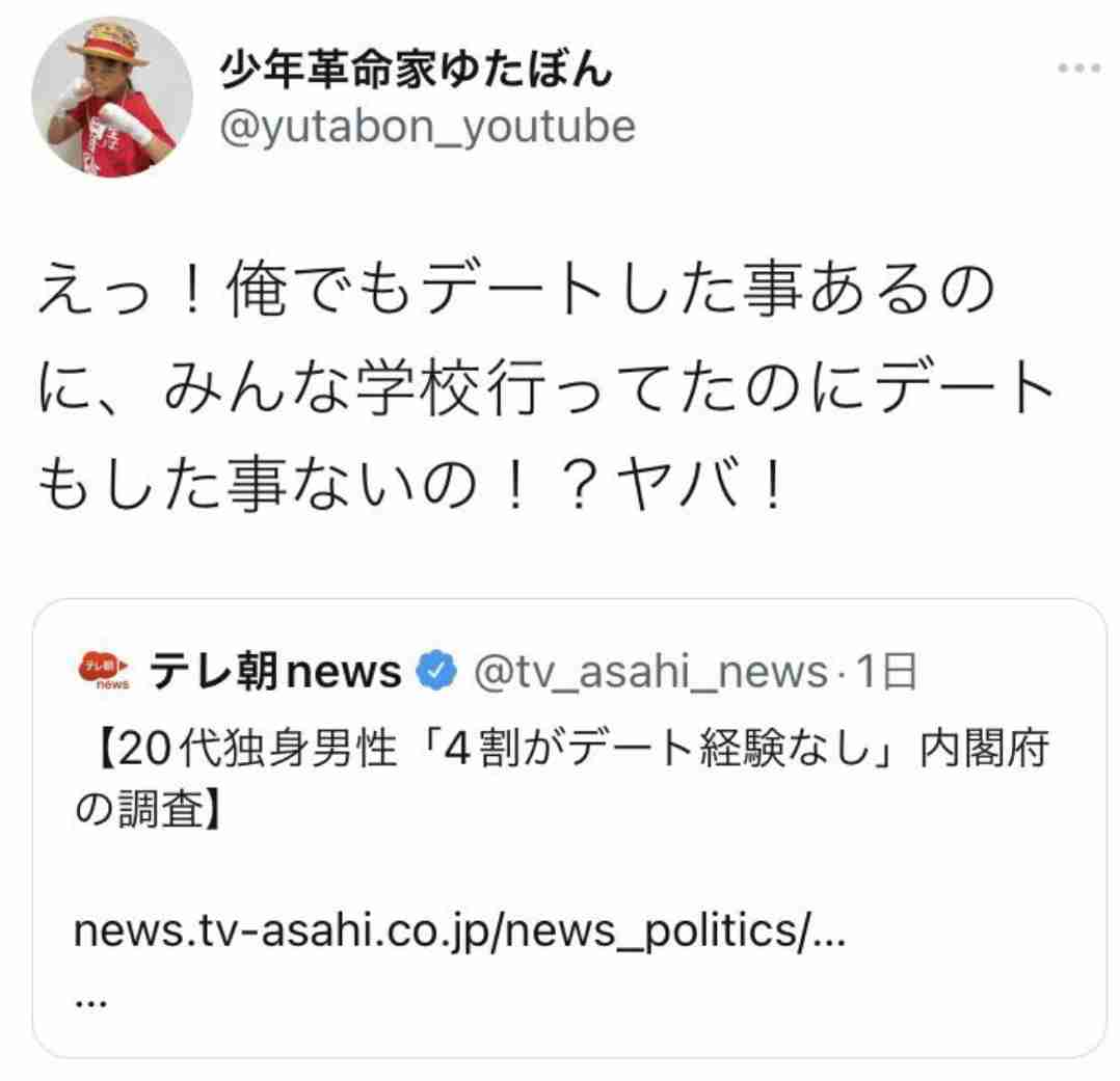 デートしたことがない(≒結婚ができない)だの、賃金があがらないだの、こんな気落ちさせられるニュース、主要先進国でこんなに頻繁に目にしなくちゃいけないの、日本ぐらいだと思うわ。+0
