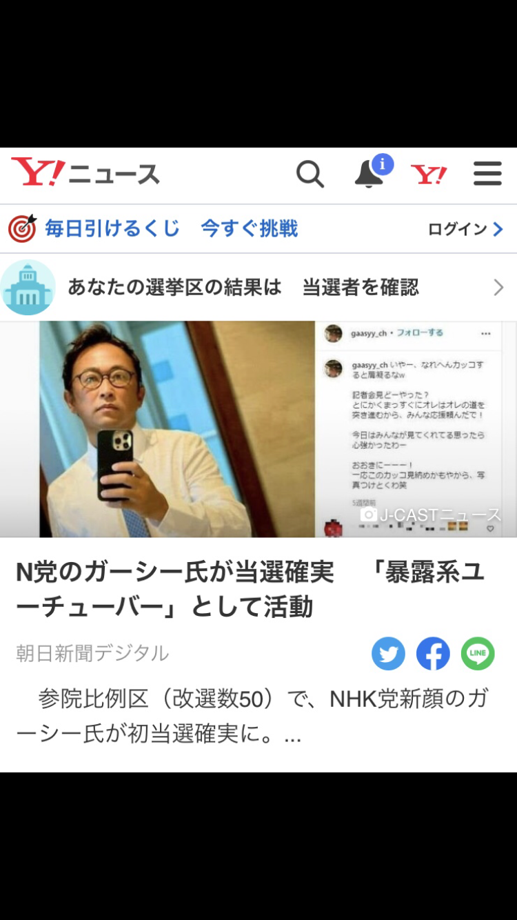 暴露や炎上商法だけしてるような人はYouTubeだけで充分だよ、こんなんが当選したら世も末だって、自民に投票するって言ってた。