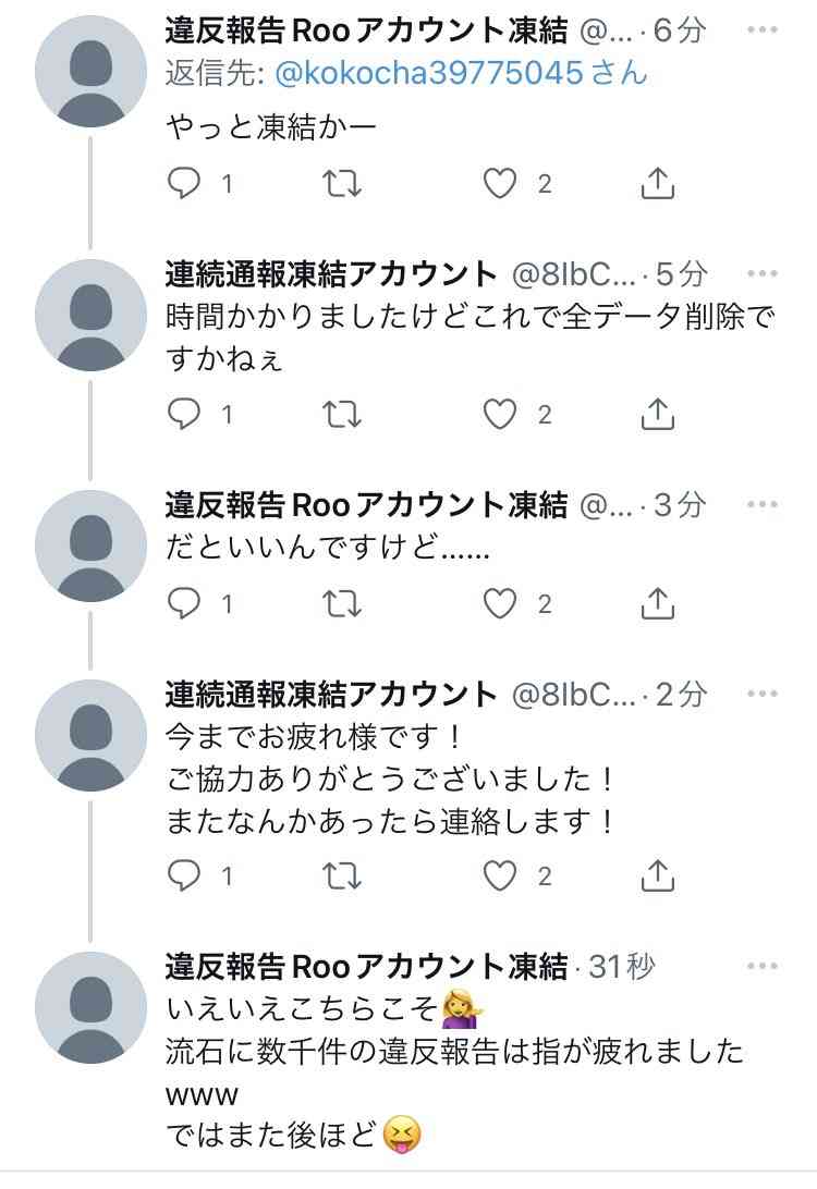 こんな捨て垢で違反報告しまくって5k以上のフォロワー数がいる垢を凍結できるもんなんかねー。