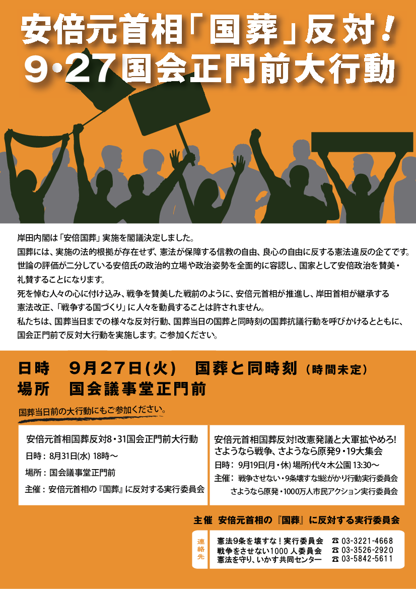 国葬当日は国会前で反対の声を上げましょう!✌️![]()