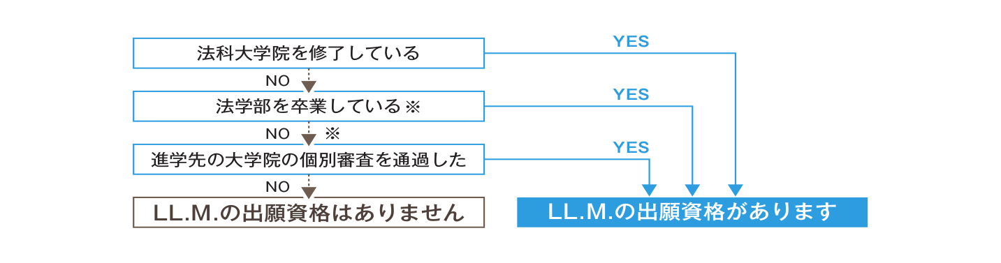 LLMはLSATは必要ありません。ただし自国で既に弁護士資格を持っている、または法学部卒業している、など入学資格に制限があります。