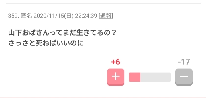 山下アンチが大量プラマイ操作を目撃されて騒がれたトピ