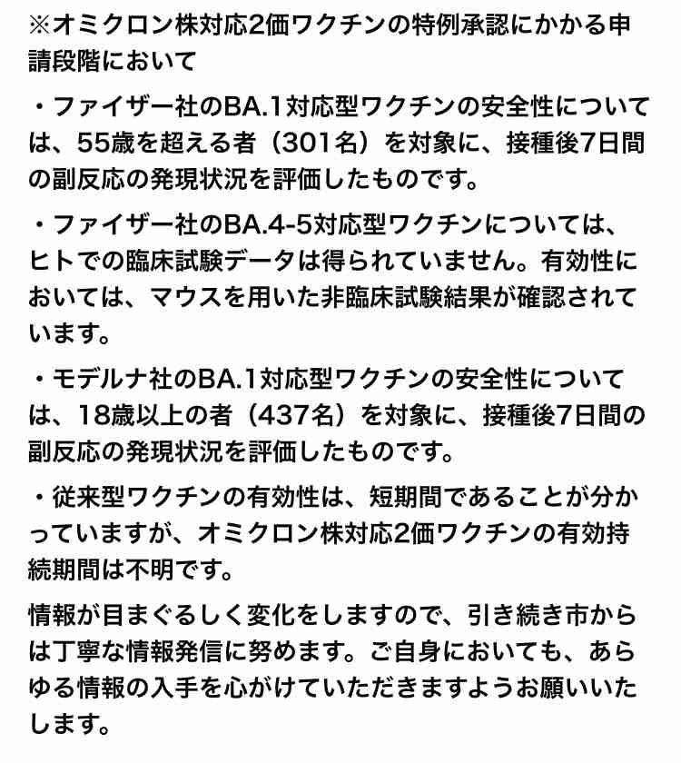 オミクロン株対応ワクチン接種(3・4・5回目)について/泉大津市スマートフォン版を表示本文へMultilingualRSSサイトマップ現在の位置ホーム各課の情報健康こども部健康づくり課お知らせ健康情報新型コロナワクチン接種についてオミクロン株対応ワクチン接種(3・4・5...