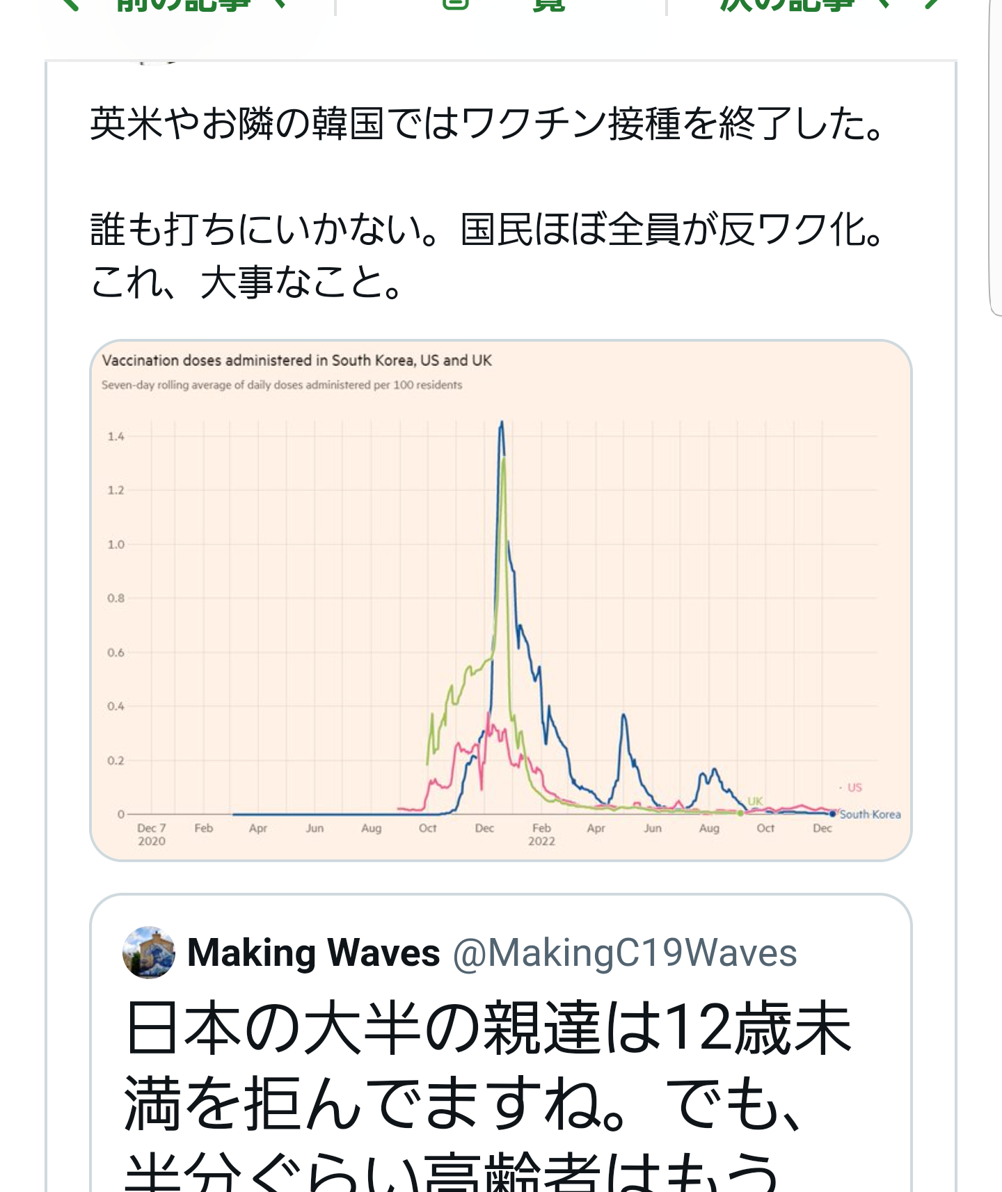 英米やお隣の韓国ではワクチン接種を終了した。