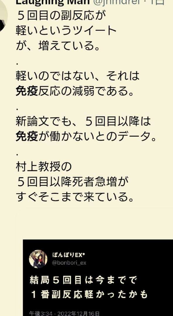 そもそも2021年の頃から、治験中だとか色々そこらへんの普通の国民でも自分なりに情報を集めて警戒はできたのに、そこを何の疑いもなく打ち続けるのって、ある意味「権威教」でもあるし、本人もそのまま打ち続けて本望なんだろうから、進めばいいんだよね