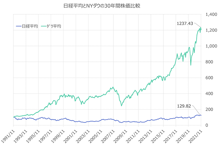 アメリカはこの30年で株価が12倍になったけど日本はほぼ横ばい