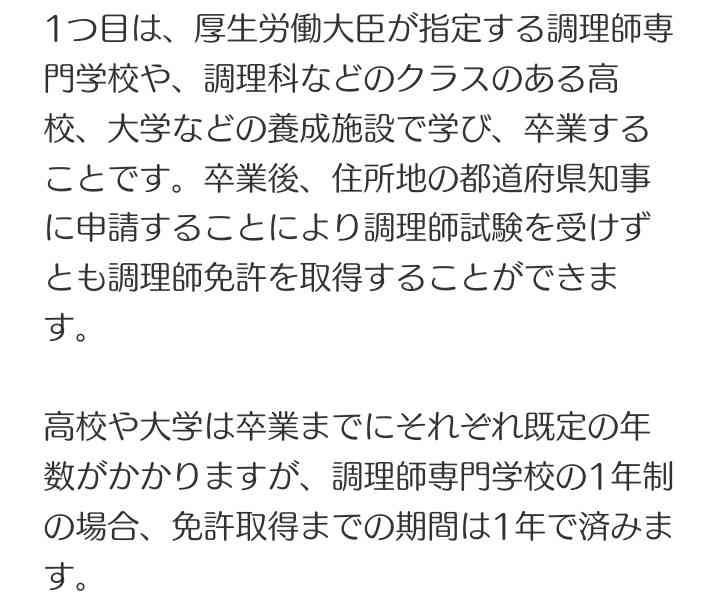 そうですね。専門学校の他に調理科のある高校や大学を卒業すれば実務経験なくても大丈夫みたいです。![]()