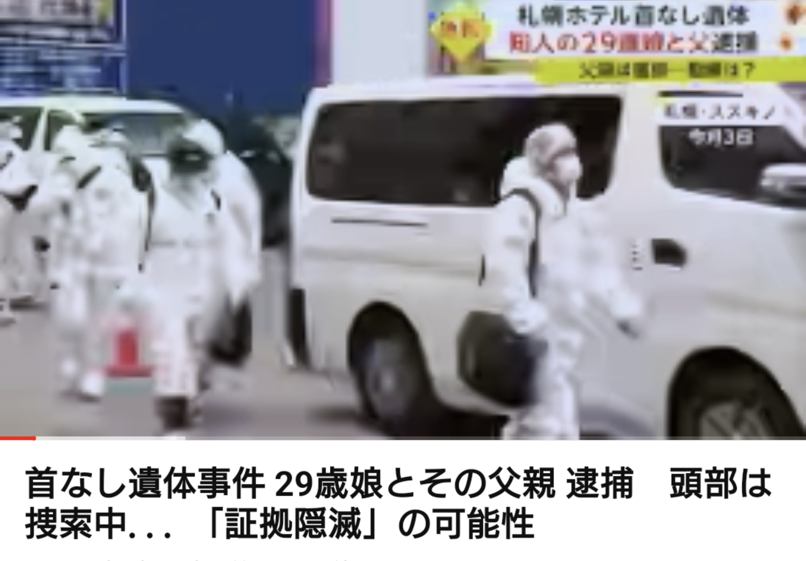 あの馬鹿でかいトランク見るに、全身バラして証拠隠滅する予定だったけど予想よりずっと大変で無理ってなって、切っちゃったし頭だけ持って出るかってなったんじゃない?+788