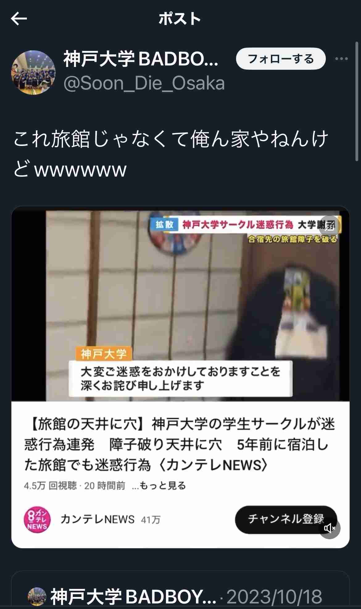 今後を考えるなら許すよりも毅然とした態度で人生詰むんだってことを世に知らしめないと同じ事件が無くならないだろうし、旅館側にはしっかりと弁償費用と修理完了して宿泊再開されるまでの日数分の宿泊費を請求しながら同時進行で刑事告訴もしてほしい。+65