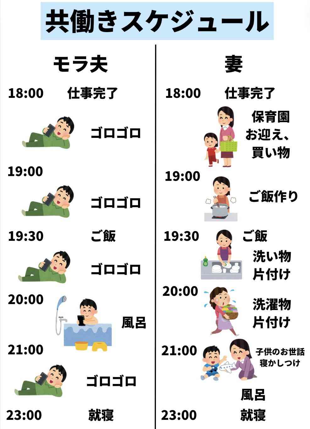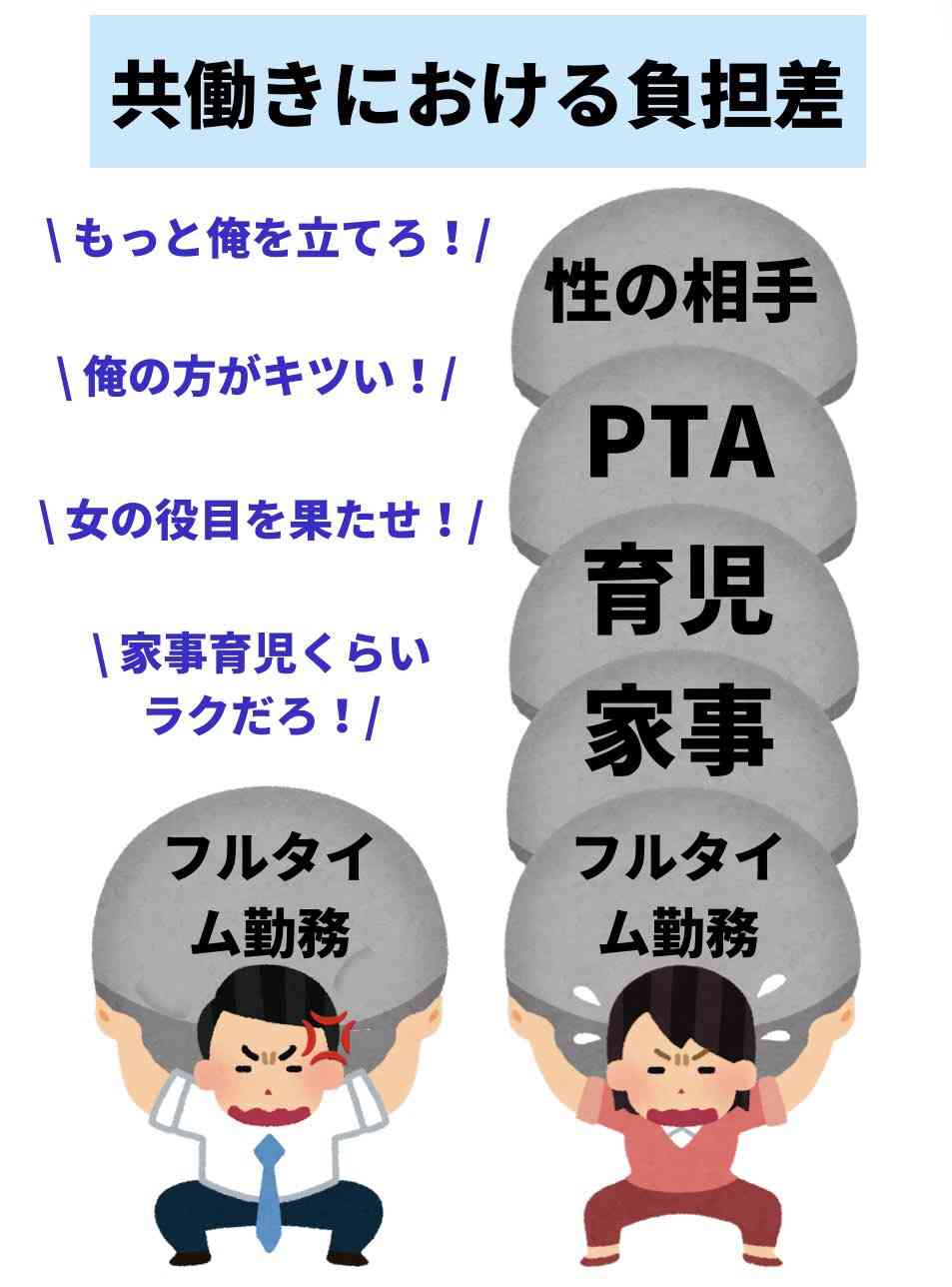 うちも共働きだけど、家事育児PTAは全部半分ずつ分担だけどな。