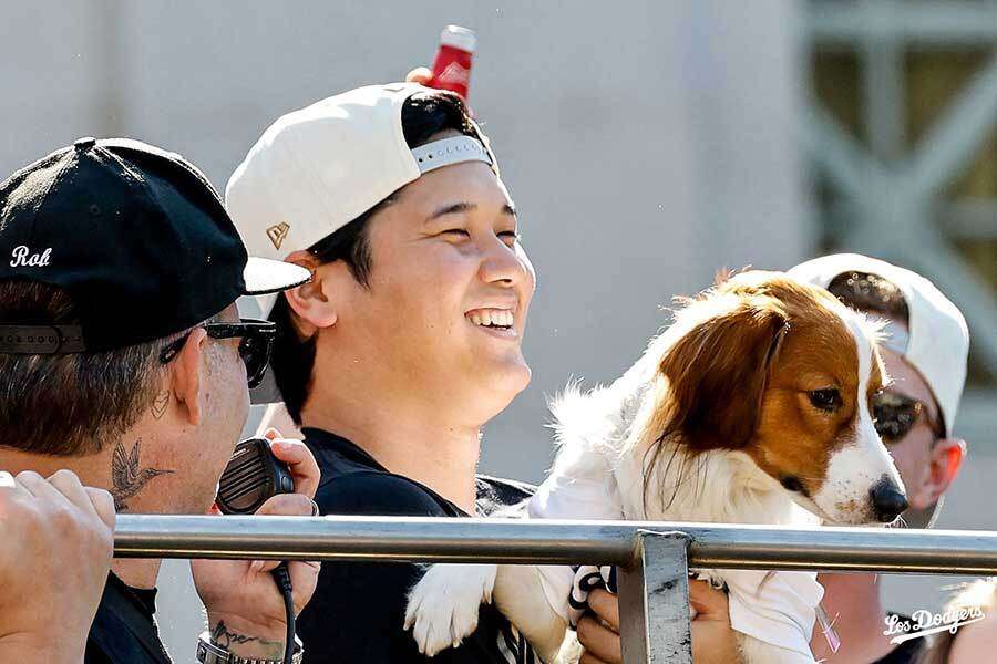 ドジャースタジアムでもパレード中継が行われ、その後球場内で祝賀イベントを実施。大谷が英語で「僕にとっては大変特別な瞬間です」などとスピーチするなど、最後まで大盛り上がりだった。