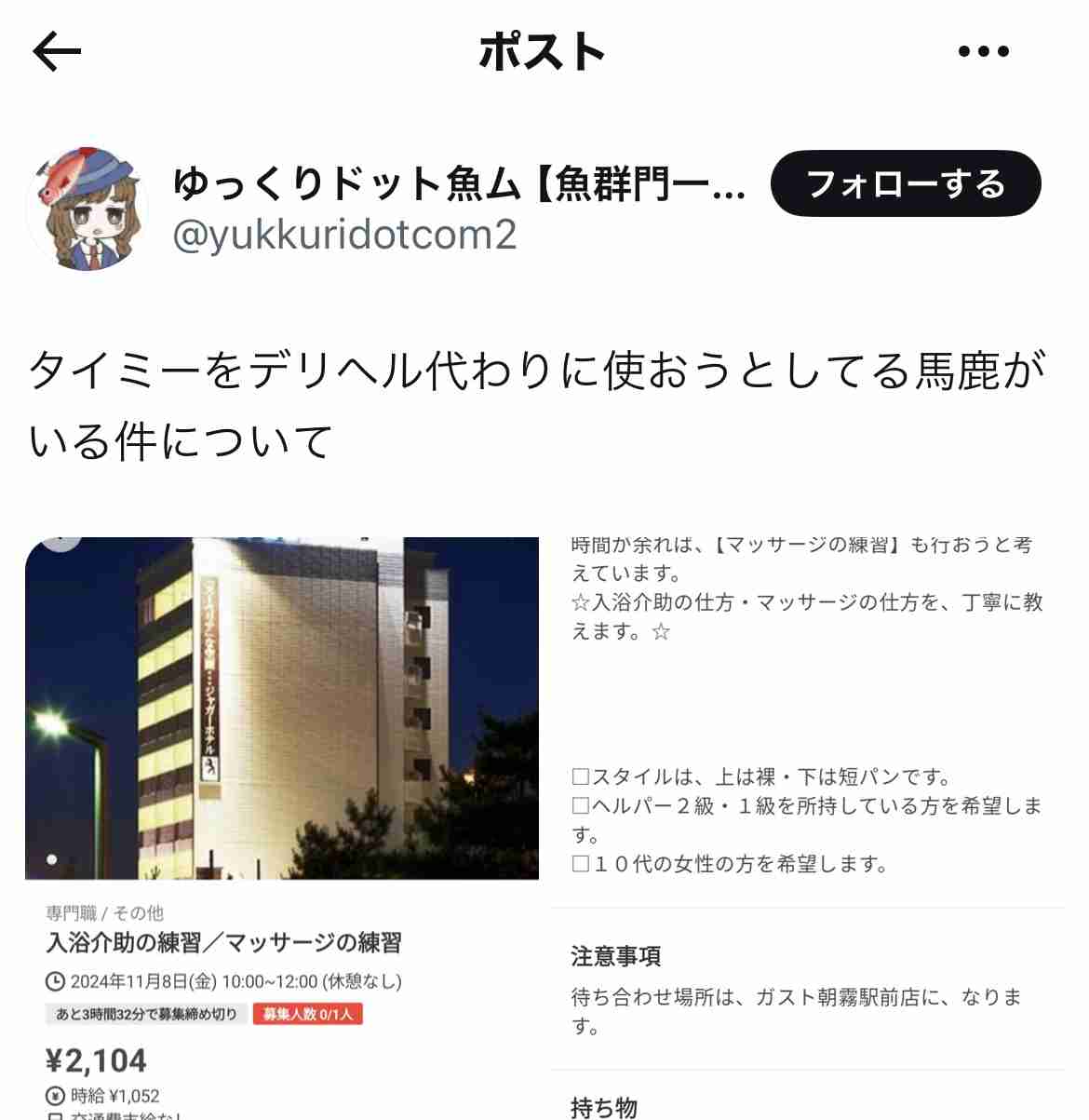 タイミーやindeedに掲載とかとんでもなさすぎる