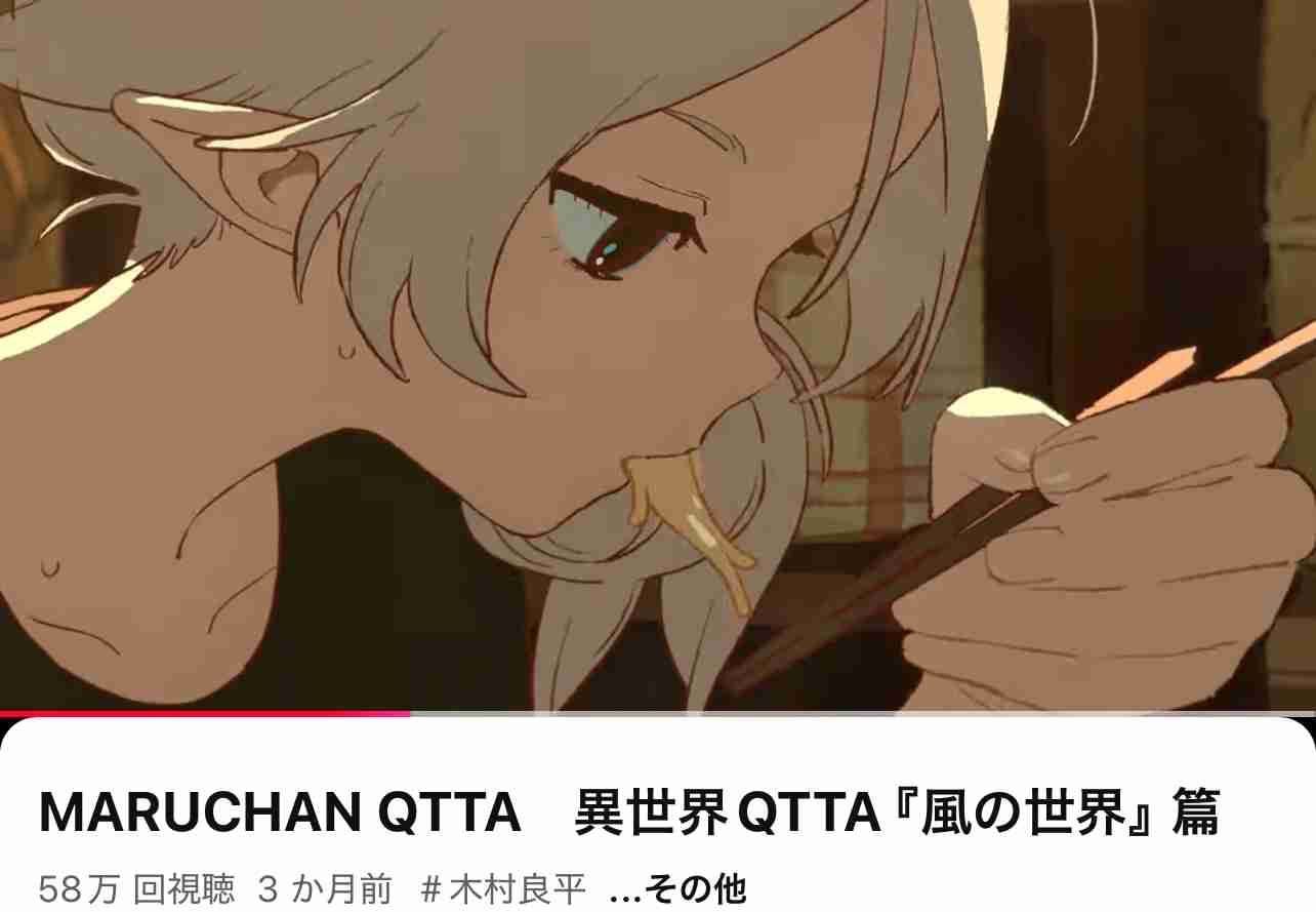 同じアニメ女性の麺の飲食シーンありのCMでもこっちはすごいレベル高いし頬なんか赤らめてないけど可愛くて美味しそうだぞ