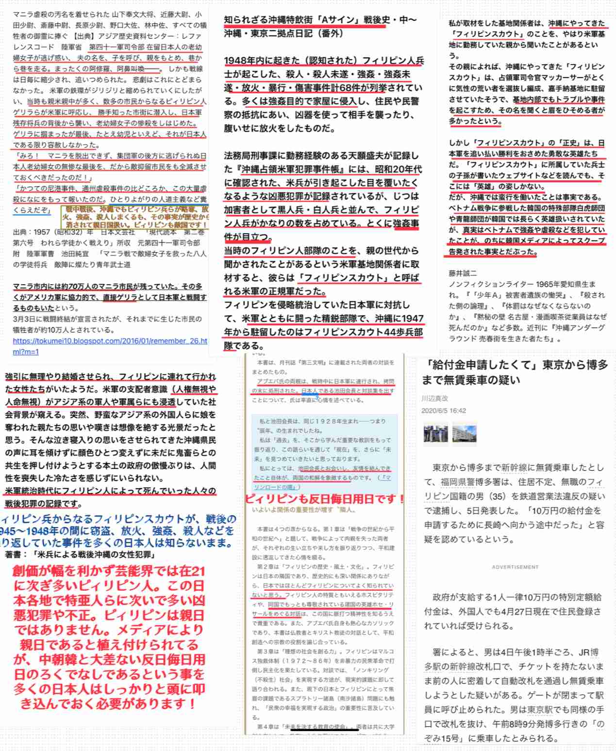 ピィリピン兵らに日本人女性たちが性奴隷として連れ去られた事案が多数あったのも、今やなかったことにされてる、