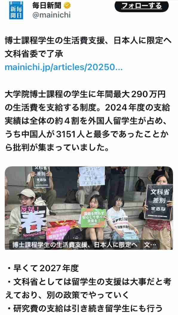 それも生まれた時から反日教育受けたチャイナ学生を大量に学費生活費無料でハーバードから追い出されたC学生も無料で国立に受け入れる売国帰化人議員だらけ与党維新立憲!!+2