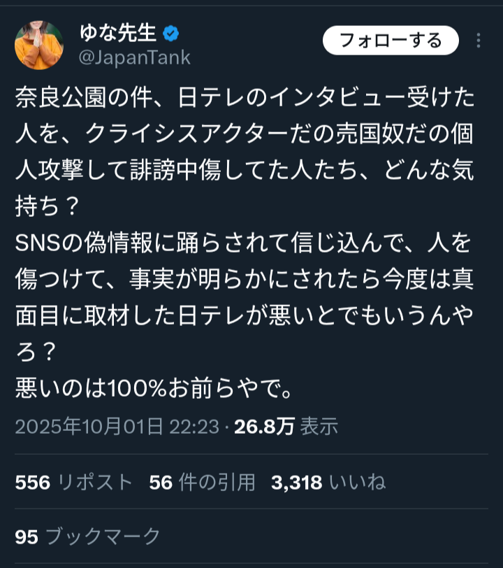 同じことでも、我々が言えば意見 お前らが言えば誹謗中傷 ふざけるなオールドメディア!