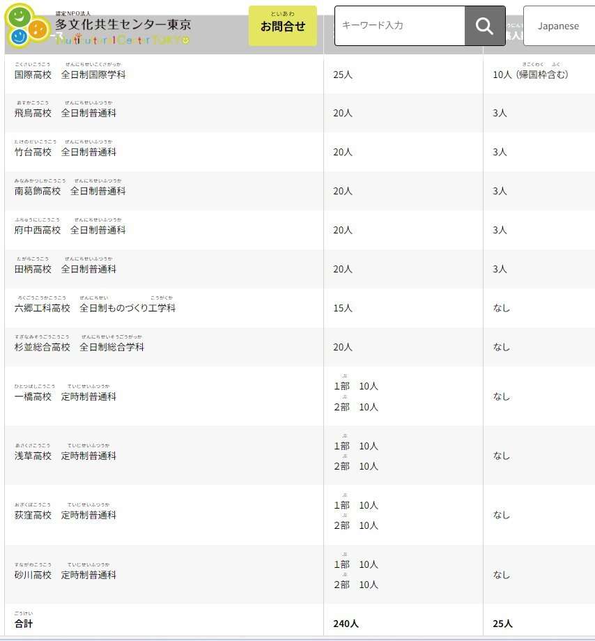 日本語が不自由な人(国籍問わず)を対象とした「在京外国人生徒等対象入試」!