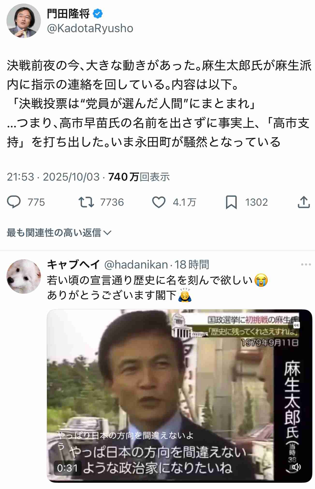 石破の時も高市さんがなるべきだった。石破いらんかった。+184