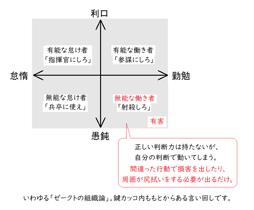 やる気のある無能は処刑ってやつ思い出した