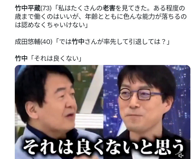 竹中、自分は老害じゃないから引退したくない![]()