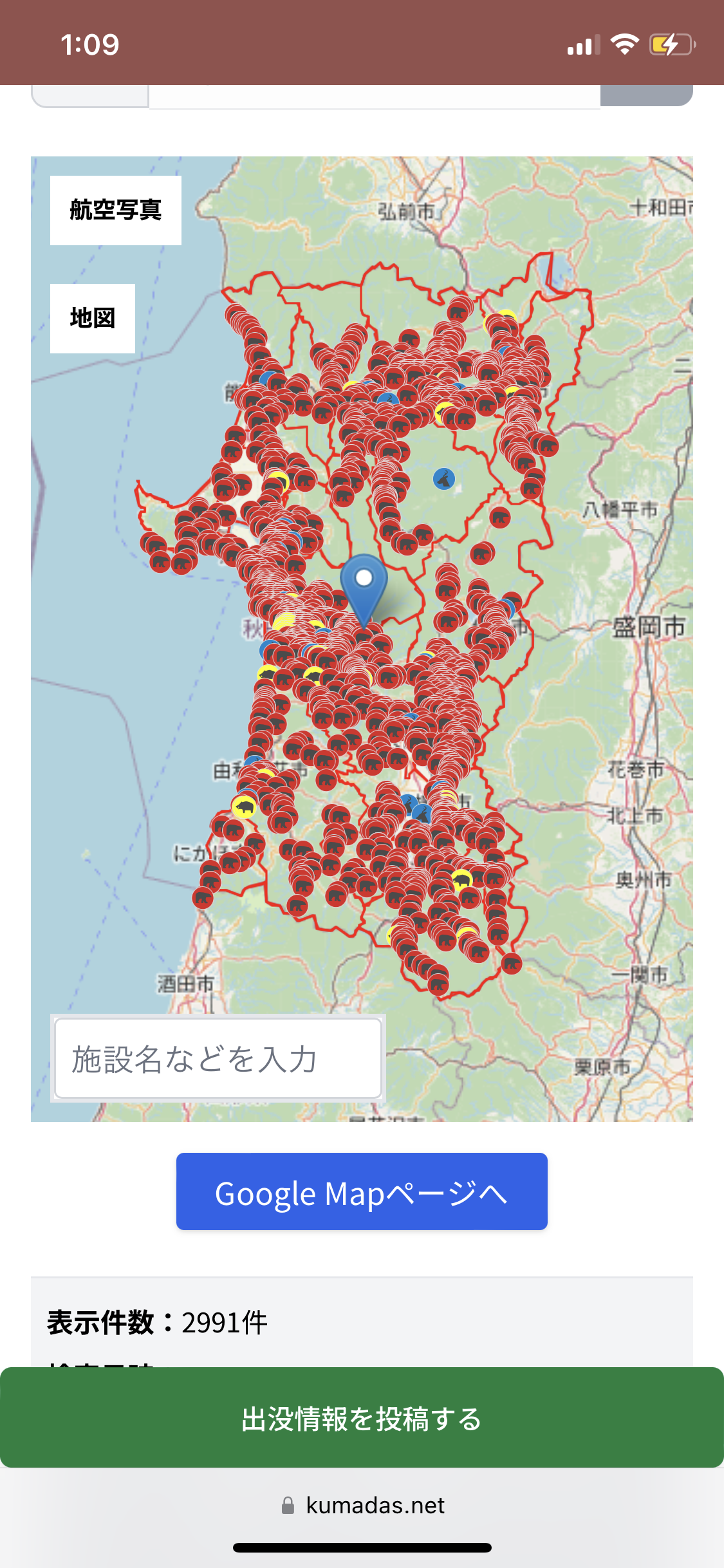 「メガソーラーのせいだなんだ言われてるけど、まったく逆。人口減少で人が住むところがどんどん山から遠ざかって、里山が原生林化している。森が豊かになって増えたクマが、人間の生活の場に近づいてるんです。人口1000人の村周辺に、2000頭のクマがいるようなところもある。県で作った目撃情報の一覧マップもあるけど、実際はあれの3~5倍は出てますよ。だって届け出するたびに警察の調書に付き合わされるんだから。毎日出るようなところはいちいち報告してられない」