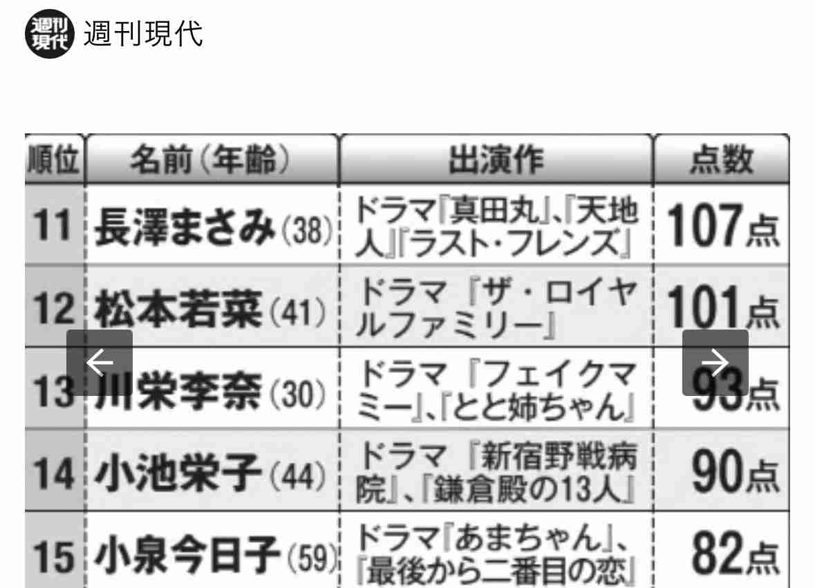 このランキングに長澤まさみ入っていないね。
