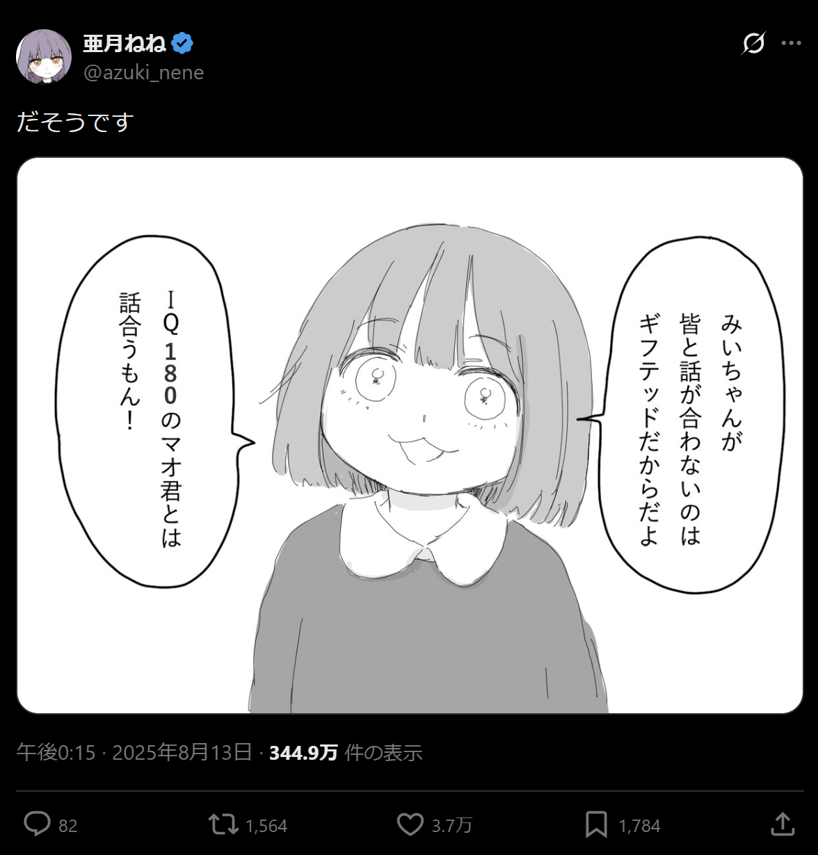 作者の亜月ねね(女衒垢ダイアナの元作画担当)のXに投稿されてるやつだけど