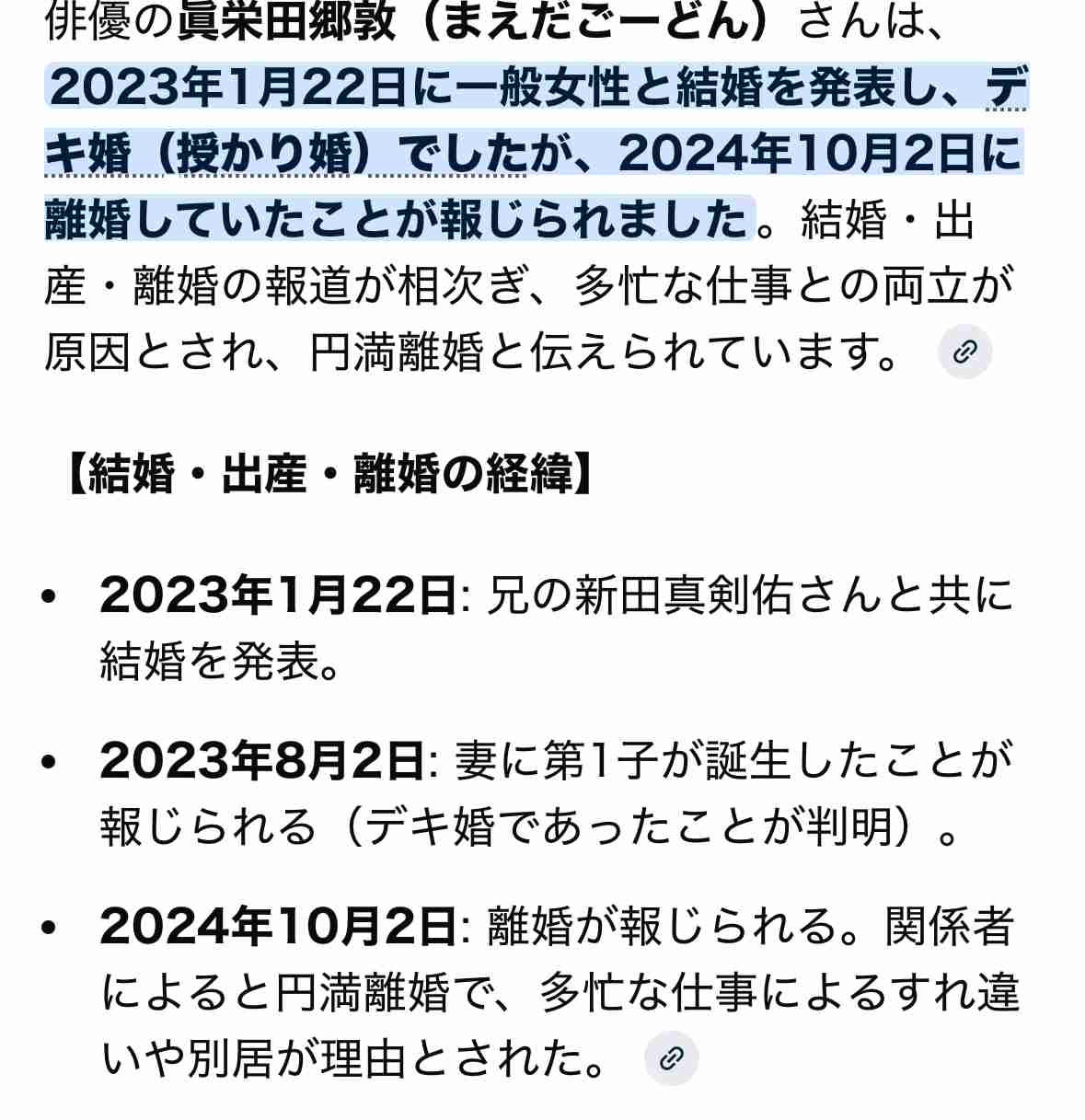 真剣佑の弟のゴードンもデキ婚してすぐ離婚したよなと思って調べたら、620日で意外と長かった![]()