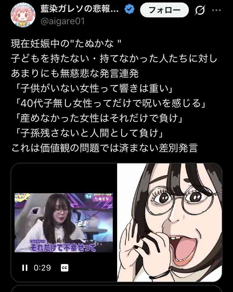 現在妊娠中の"たぬかな " 子どもを持たない・持てなかった人たちに対し あまりにも無慈悲な発言連発 「子供がいない女性って響きは重い」 「40代子無し女性ってだけで呪いを感じる」 「産めなかった女性はそれだけで負け」 「子孫残さないと人間として負け...