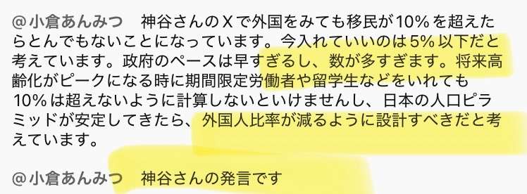 え?神谷さん移民は10%以下(1,200万人)と言ってたよね?間もなく5%以下になって、また言うこと変わったの?大丈夫?+11