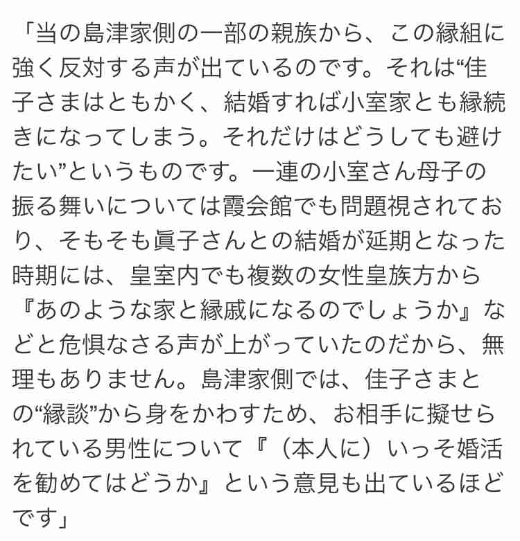 ド庶民の下衆の勘繰りですが、高円宮家の娘さん2人の縁談は久子さまの人脈ですよね。長女さんは仕事や勉強が楽しそうだからいいのかな、三笠宮家の信子さまは麻生家だから名家出身だけど娘さん達と仲違いしてるらしいから仕方ないのかな?と。結婚してから人脈を作ることもできるのかもしれないけど、秋篠宮家はしなかったのかね。眞子さんの結婚がさらにハードルを上げたよね。+75