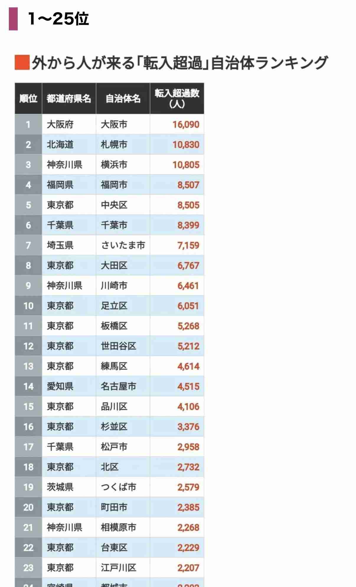 転入超過ランキング