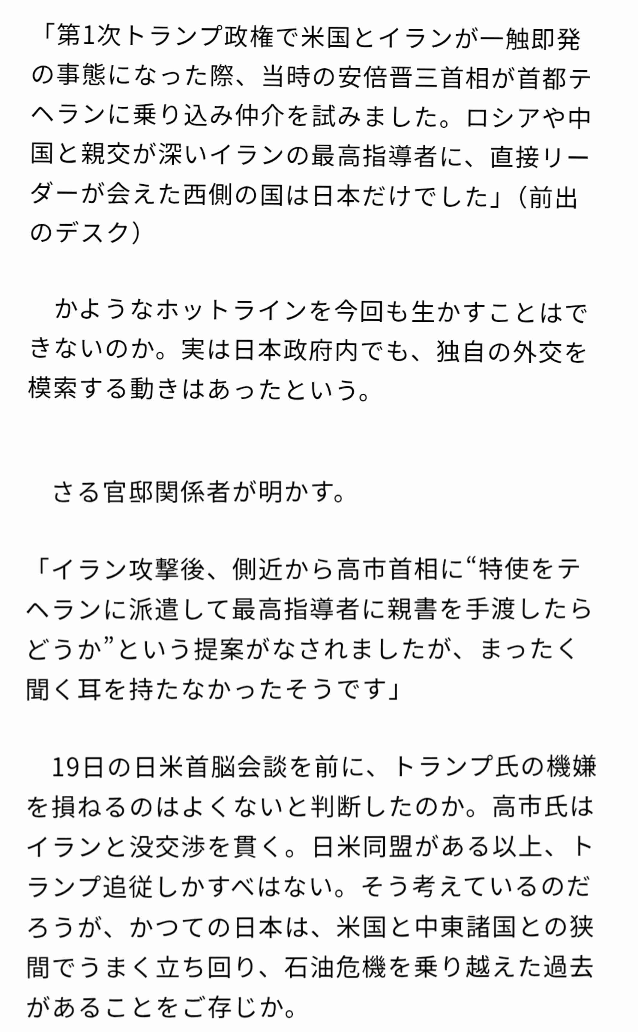 これまでの政治家達が頑張って積み上げて来た関係は、こういう時のために使うんじゃないの?イランから話し合い持ちかけられて、それさえ拒否するなんて信じられない。![]()