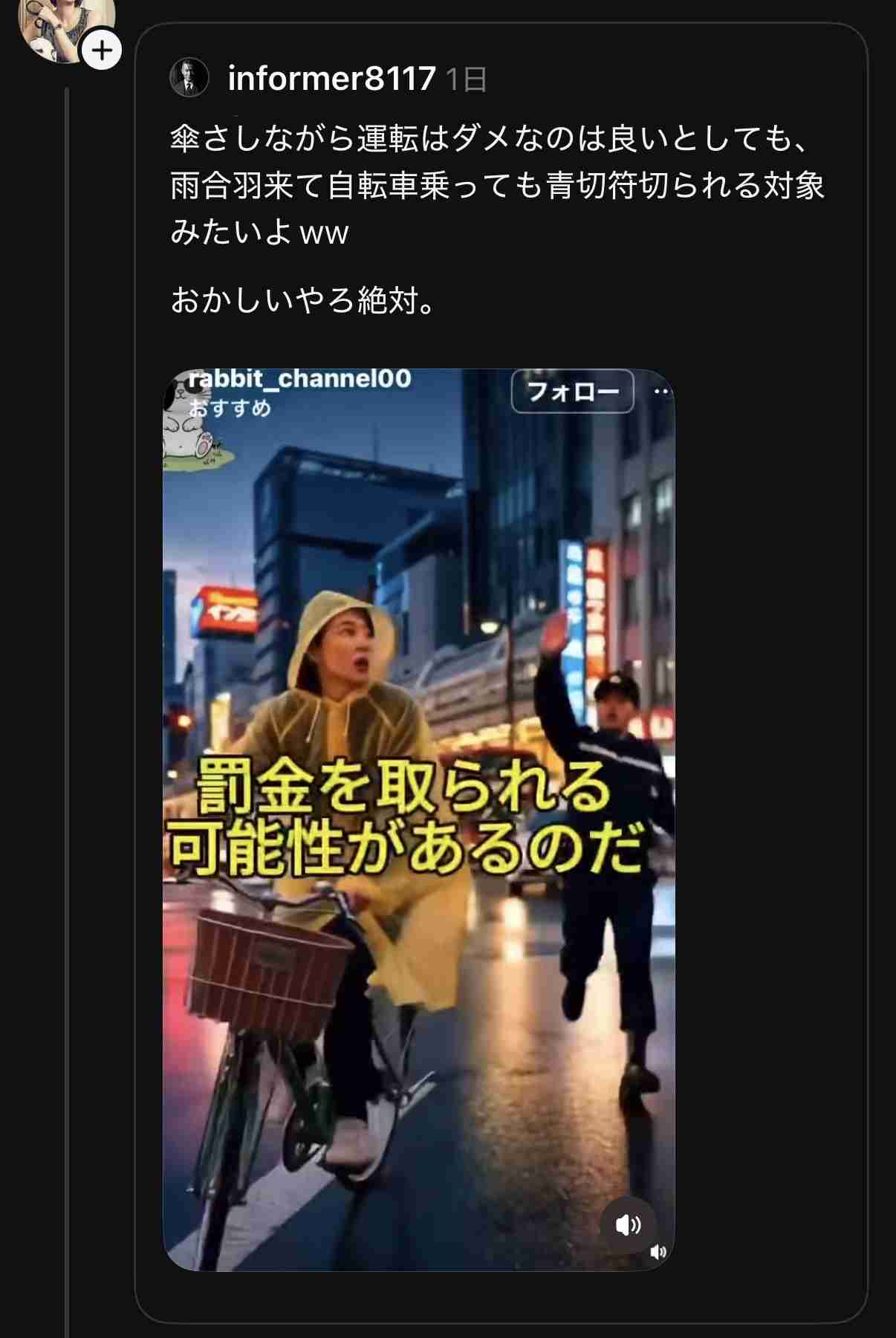 もちろん、イヤホンスマホとか信号無視は取締りは強化は賛成だけどね+4