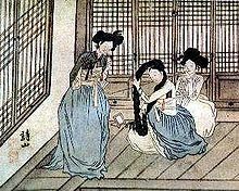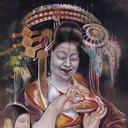 今都での最新ファッションよ。あら少し頬紅入れすぎたかしら?