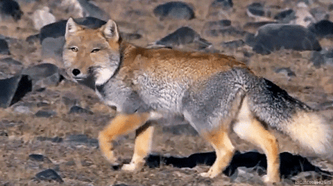 主人公が道を歩いてるとチベットスナギツネに出会う