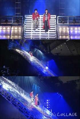 コンサートの大階段を降りる時、高所恐怖症の剛を気遣って一歩先を降りる光一。