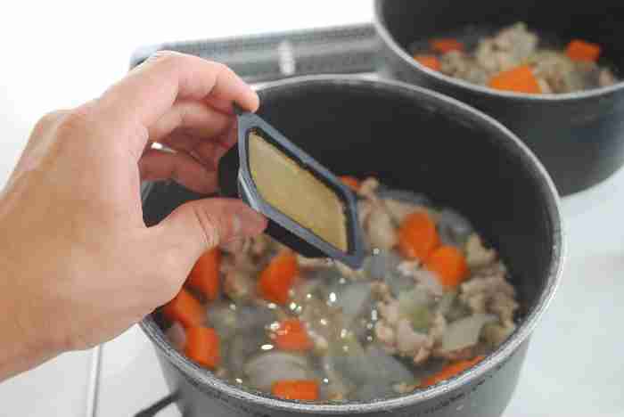 水を足して辛口のルーを何個か入れる。+4