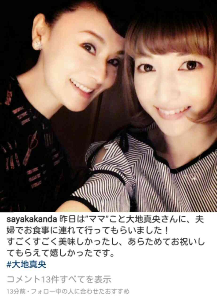 神田沙也加「ママ」とお食事に 「お祝いしてもらえて嬉しかった」 : J-CASTニュースwww.j-cast.com歌手で女優の神田沙也加さん(30)が2017年8月24日、自身のインスタグラムを更新した。食事に連れて行ってもらった際の2ショット写真を投稿し、ファンからは「本当の親子みたい」などの反響を呼んでいる。この日神田さんは「昨日は『ママ』こと大地真央さんに、夫婦でお食事に連れて行ってもらいました!」のコメントと共に、元宝塚歌劇団のトップスターで現在女優として活躍している大地真央さん(61)との2ショット写真を投稿した。