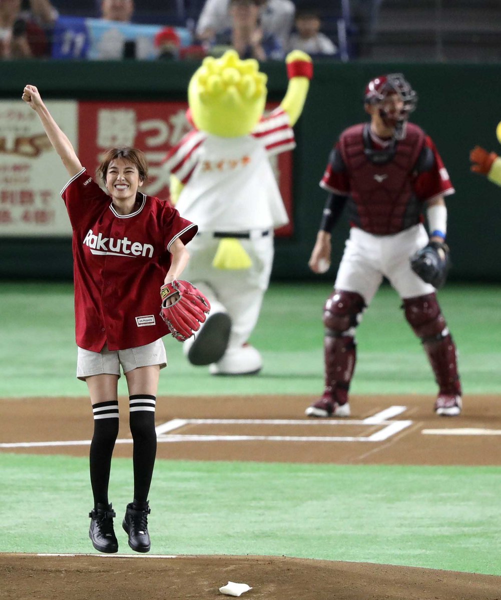 始球式ノーバンですごい喜んでるww