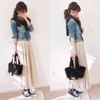 フワフワしたロングスカートにコンバースか〜…